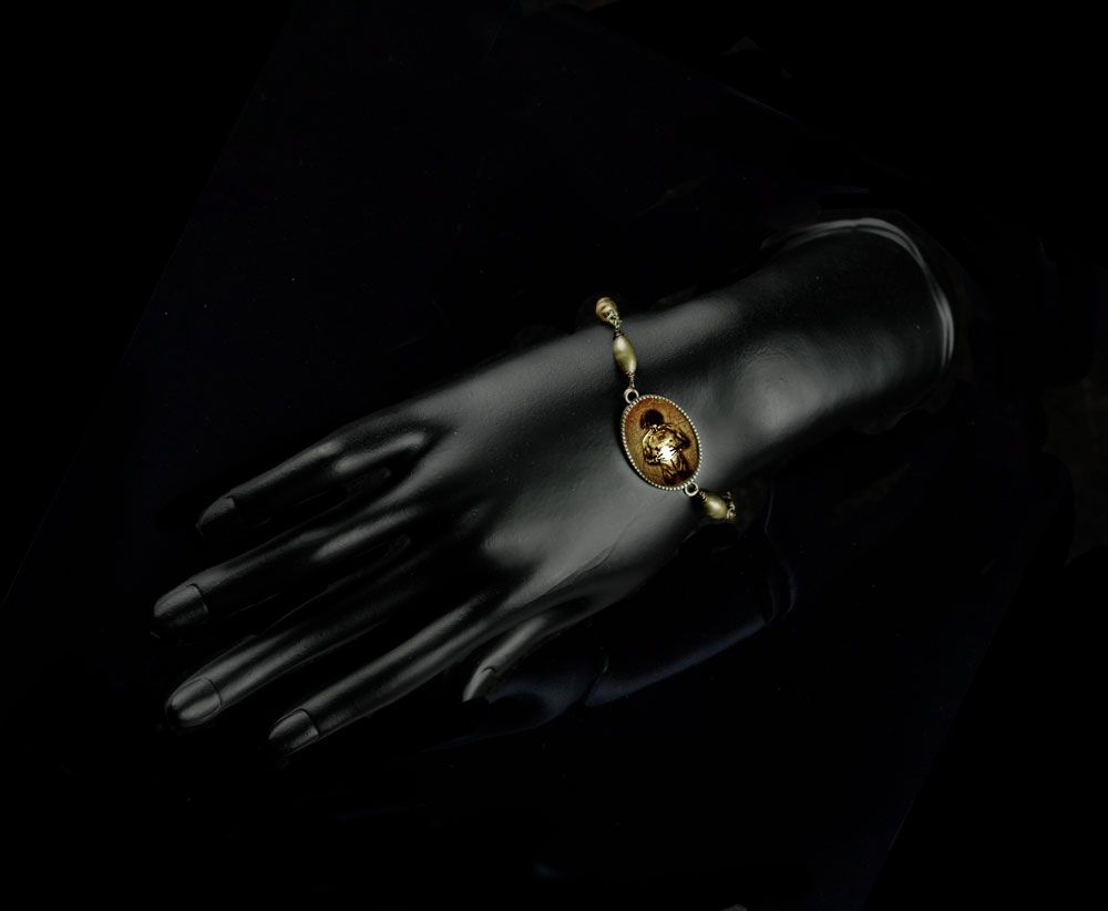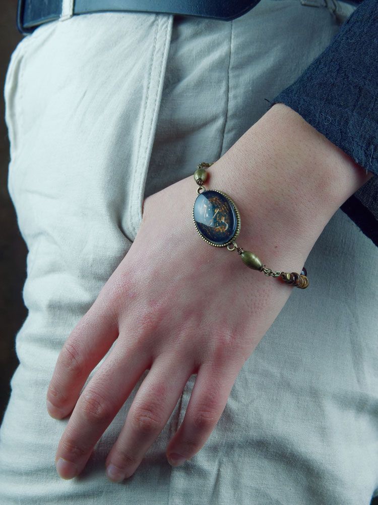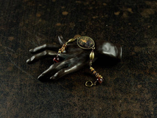 Ce bracelet est réalisé entièrement à la main par Justine Darmon et fait partie de la série Les bijoux des Lames du tarot.