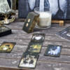 Attirée par les œuvres de Justine, j’ai souhaité acheter son tarot. Elle me l’a livré quasiment immédiatement. Ce tarot est juste splendide… son côté Renaissance se marie parfaitement avec son côté sombre. Un mélange de peinture et de photographie en fait un tarot très atypique. Les cartes sont de très belle qualité : douces, souples, mates et suffisamment épaisses. Je suis ravie de mon achat et je pense avoir fait envie à d’autres tarologues collectionneuses ! Cet article est pour moi une œuvre d’art à part entière. Un très très bel objet dans une très belle boîte.
