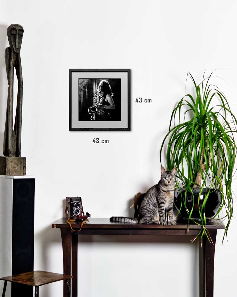 Encadrement en fonction des formats : s/passe partout encadré en bois noir, contrecollé sur dibond en caisse américaine