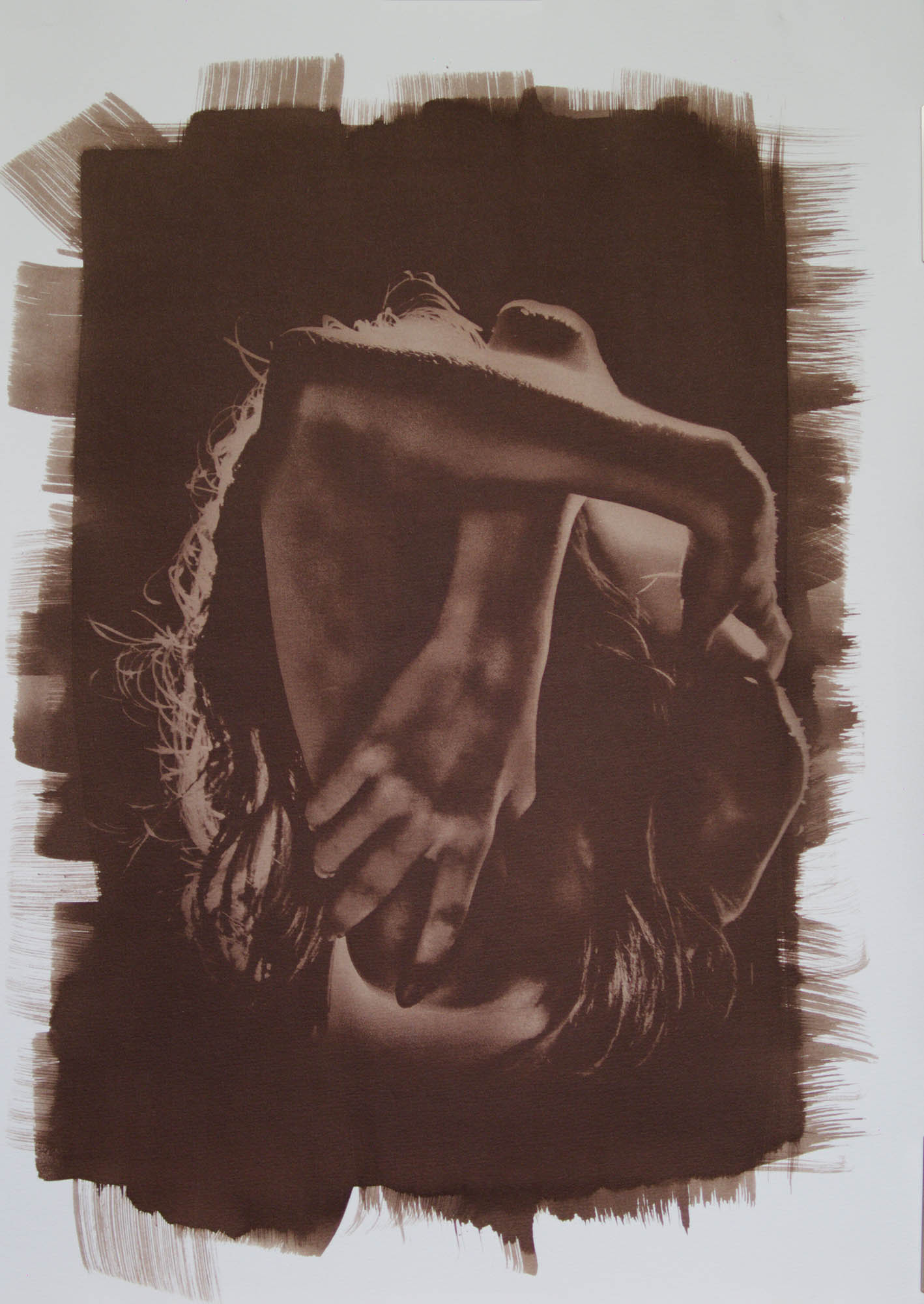 Les tirages sont effectués sur un papier dessin à grain sans acide 224 g (procédés Van Dyck) ou sur du papier Bergger Cot 320 g 100% coton (Cyanotype).